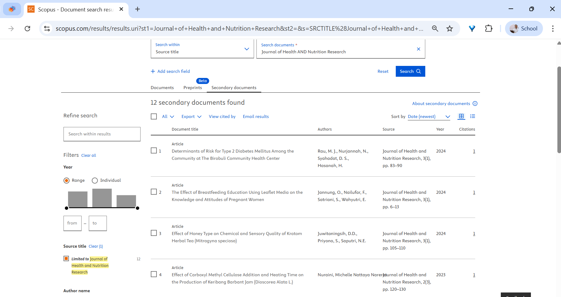 Journal of Health and Nutrition Research is cited at least once in the Scopus database: